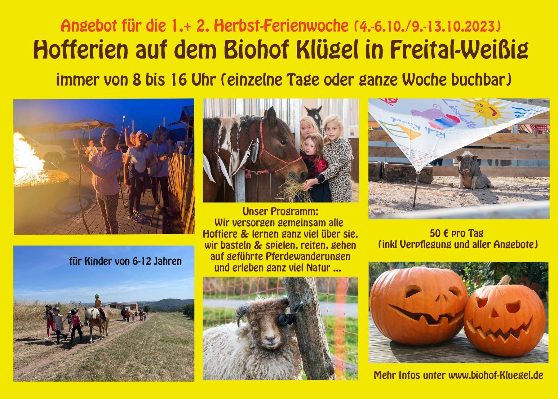 Es ist wieder soweit! In den Herbstferien könnt Ihr das letzte Mal in diesem Jahr Eure Ferien verbringen. Es gibt wieder ein spannendes Programm. In der ersten Ferienwoche von Mittwoch bis Freitag und in der zweiten Woche von Montag bis Freitag.